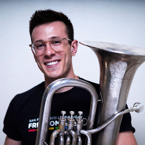 I love that being in the band makes me feel like a part of San Francisco’s continuing LGBT history. I’ve been able to meet so many great, talented people through the band, and always look forward to performing. I especially enjoy the performances that the audience gets to participate in, like the Dance-Along Nutcracker and our singalong Spotlight on Broadway concerts.