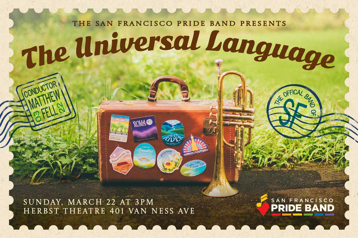 Join the San Francisco Pride Band on Sunday, March 22 for The Universal Language, a winter community concert at the historic Herbst Theatre, located a short walk from the Civic Center BART/Muni station.