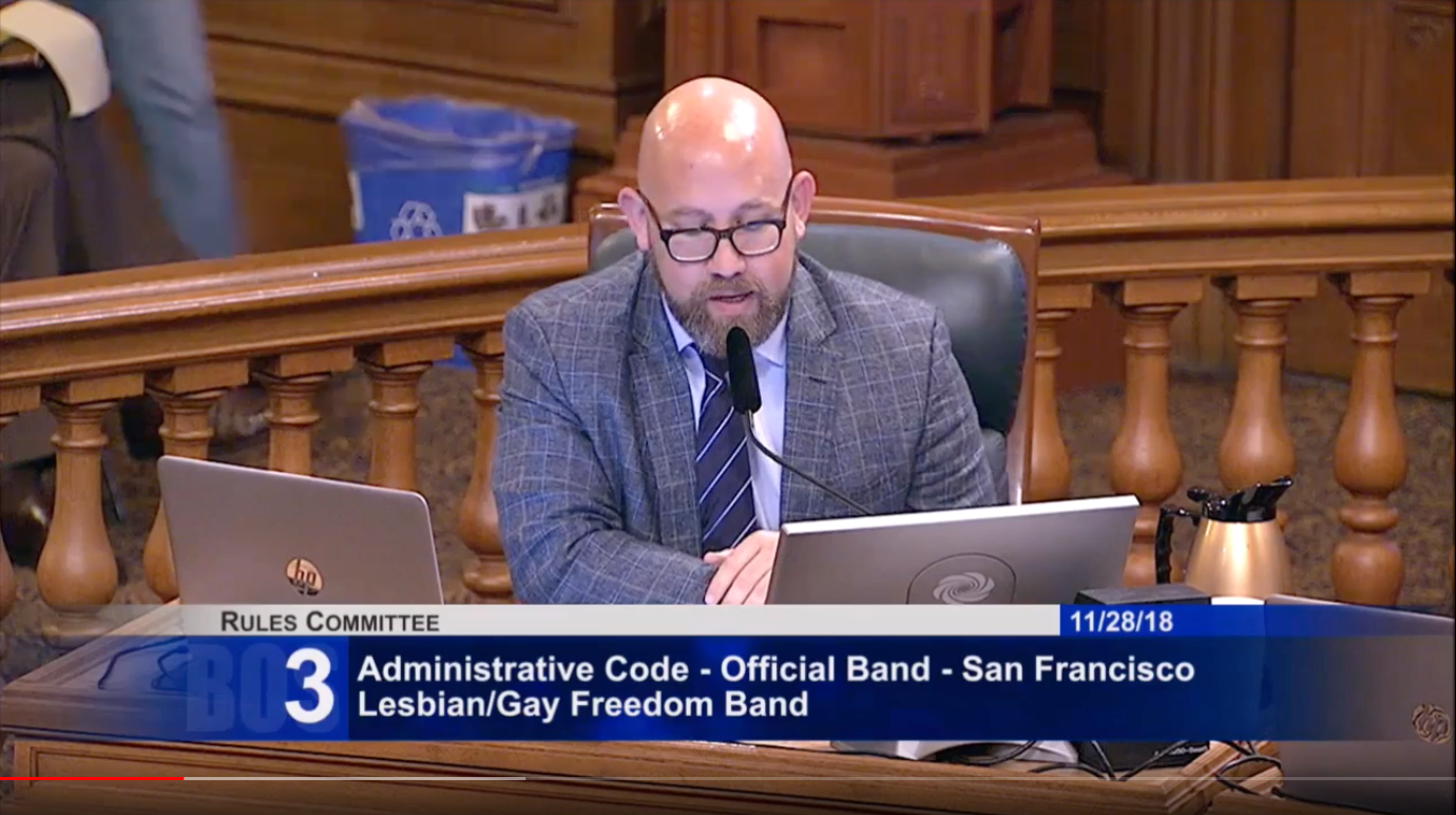 Watch the YouTube video below to see the portion of the November 28, 2018 City Hall Committee meeting regarding the “Official Band” designation!